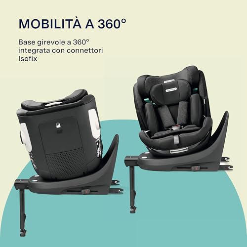 <ul> <li>✅MULTIFUNZIONI: seggiolino auto 40-150 cm (0-36 kg, 0-12 anni) permette il trasporto in posizione RWF (contro il senso di marcia) fino all’età di 4 anni oppure in posizione FWF (nel senso di marcia). Conforme alla più recente normativa di sicurezza R129 i-Size. È stato sottoposto ai rigorosi test d’impatto</li> <li>✅SICURO: dispone di sistemi di sicurezza dedicati, ovvero di un poggiatesta a tre strati con schiuma memory, H-GUARD SYSTEM e SPS+ cioè, le protezioni laterali larghe e rinforzate. Inoltre, viene installato con il sistema ISOFIX e con la cintura TOP TETHER, ed è dotato di indicatori di corretto montaggio</li> <li>✅GIREVOLE: grazie all’ EASY SPIN 360° puoi girare il seggiolino verso la portiera per accomodare il bambino nel seggiolino e allacciarlo con le cinghie interne a 5 punti d’ancoraggio. Il sistema permette inoltre di cambiare la posizione tra RWF e FWF senza la necessità di disinstallazione del seggiolino</li> <li>✅REGOLABILE: il poggiatesta dispone di regolazione dell’altezza su 12 livelli. Puoi regolare l’angolo di inclinazione dello schienale (il sistema reclining) e posizionarlo in uno dei 5 livelli preimpostati (sia nella posizione REF che FWF)</li> <li>✅PRATICO: quando il bambino cresce abbastanza per poter essere allacciato con le cinture di sicurezza dell’auto puoi ritirare le cinghie interne in un apposito scomparto. Il seggiolino dispone inoltre di un inserto modulare con schiuma memory nel poggiatesta, prevista per i bambini più piccolini. Il rivestimento e’ facilmente rimovibile per il lavaggio</li> </ul>