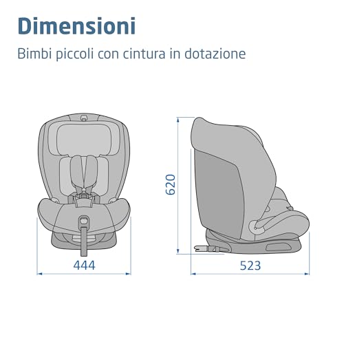 <li>Sistema con seduta girevole, test di impatto laterale; dualfix doppio sistema di aggancio con e senza ISOFIX da 100 a 150 cm di altezza; ulteriore protezione integrata</li>